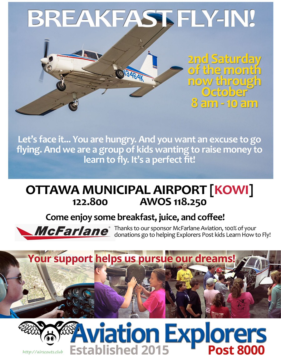| Saturday | Oct 13 | OWI | Ottawa Breakfast Fly-in (Ottawa Municipal, KS) | 8:00-10:00 | 68 |